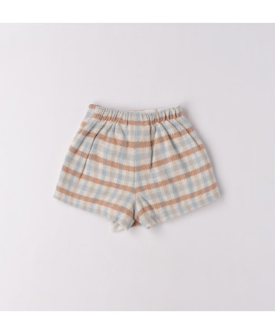 Pantaloncino per bimba, tagliato corto. Composizione: 65% cotone, 5% acrilico, 3% fibre semi sintetiche, 27% poliestere.