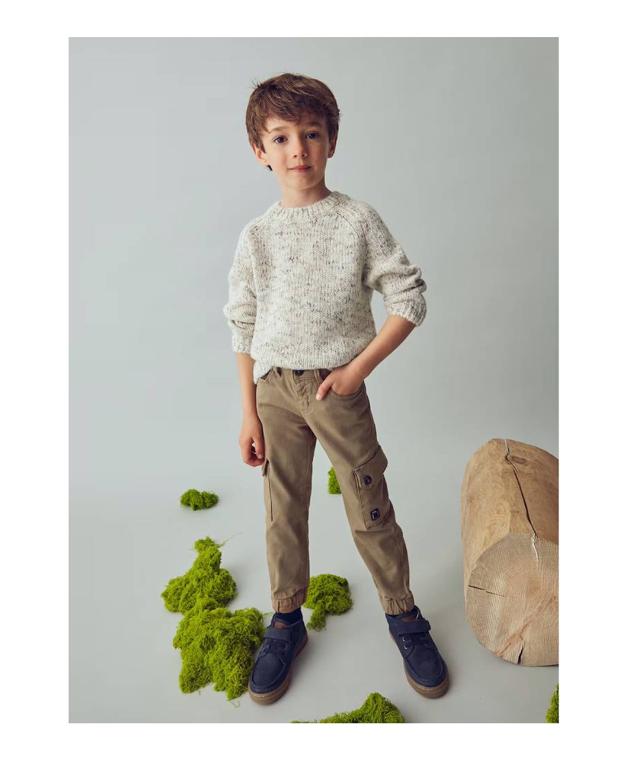 Pantalone per bambino stile cargo: ampio nella parte superiore, con cavallo basso e vestibilitnormale sulla gamba. Chiusura con un unico bottone. Elastico regolabile in vita che garantisce un migliore vestibilit Orlo elasticizzato per una migliore vestibilit Modello con varie tasche. Per motivi di sicurezza, nelle taglie piccole (2-5 anni) la cerniera sostituita da una finta patta. Scegliendo i nostri prodotti in cotone, supporti il nostro impegno nell'iniziativa Better Cotton. Il cotone Better Cotton ottenuto attraverso un sistema di bilancio di massa e non puessere fisicamente ricondotto ai prodotti finali. tuttavia, i produttori di cotone beneficiano della domanda di Better Cotton in volumi equivalenti.