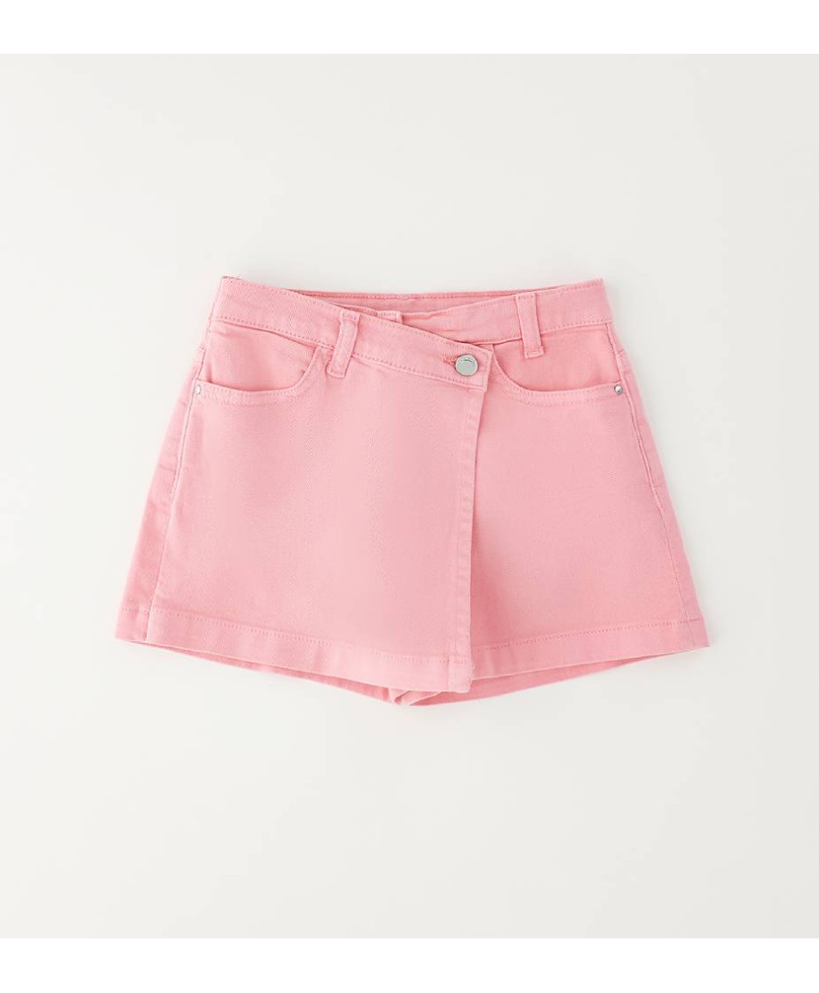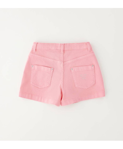 Pantaloni bambina corti in tessuto navetta. Pensata per un uso quotidiano.