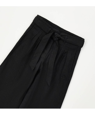 Pantalone da bambina in tessuto misto lino e viscosa. Composizione: 67% viscosa, 33% lino.