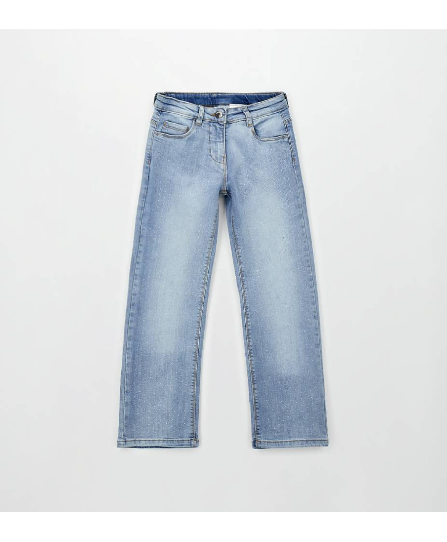 Pantalone denim da bambina in denim stretch. Composizione: 97% cotone, 3% elastan.