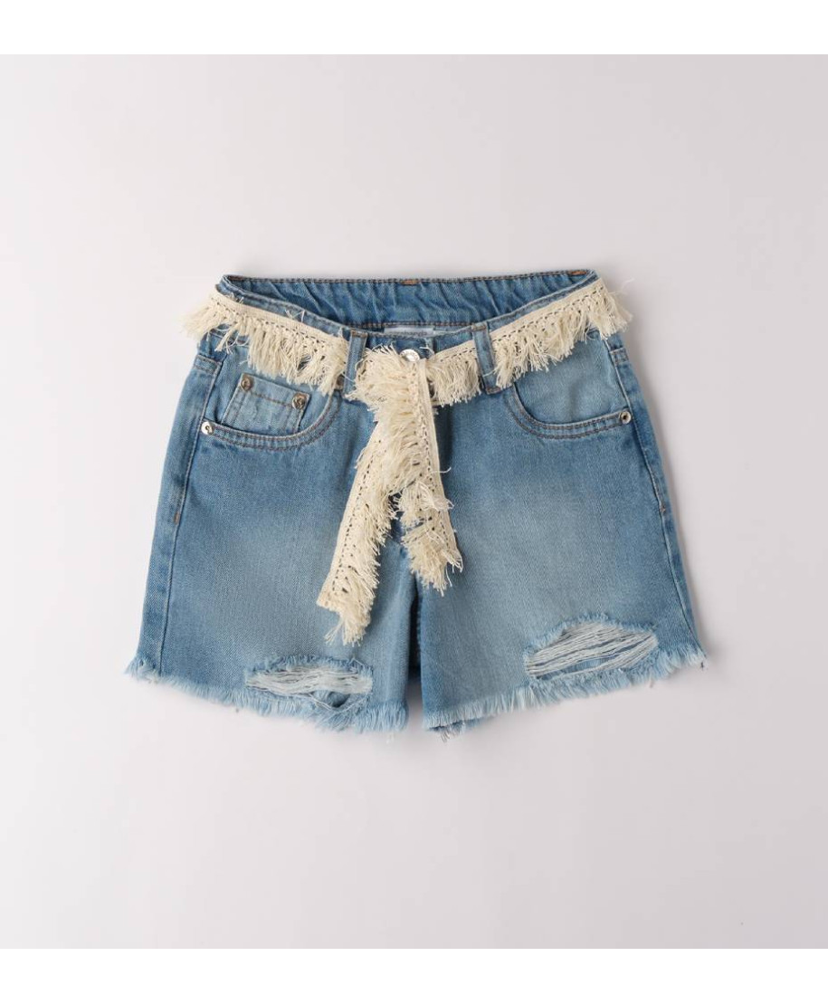 Short bambina in demin con cintura. Comodo e pratico per la giornata. Ideale per l'abbigliamento bambini primavera estate, perfetta per il tempo libero e le gioco all'aperto.