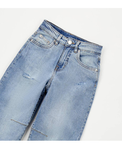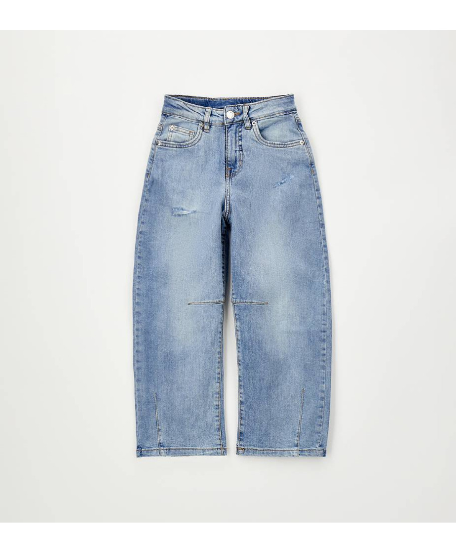 Pantalone bambina denim lungo comodo per il movimento e il gioco. Ideale per l'abbigliamento bambini primavera estate, perfetto per scuola e tempo libero.