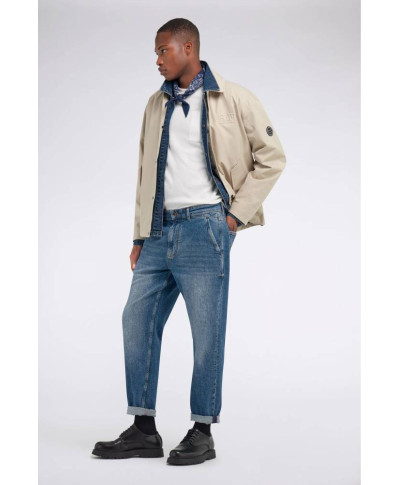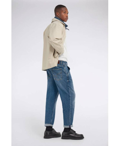 Jeans chino uomo tapered fit, in tessuto comfort dalleffetto autentico da 11.50 OZ. Il lavaggio medio/chiaro con pomice dona al blue indaco un carattere vissuto ma sofisticato. Una scelta essenziale per un outfit effortless con un twist contemporaneo.