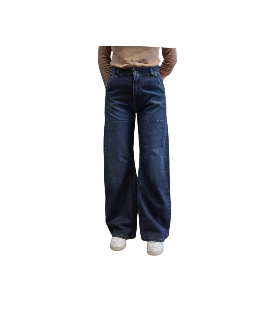 Jeans a vita alta con gamba ampia, pieces sul ginocchio per un effetto strutturato e tasche alla francese. Composizione: 98% cotone, 2% elastan.