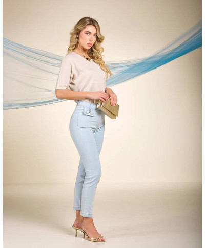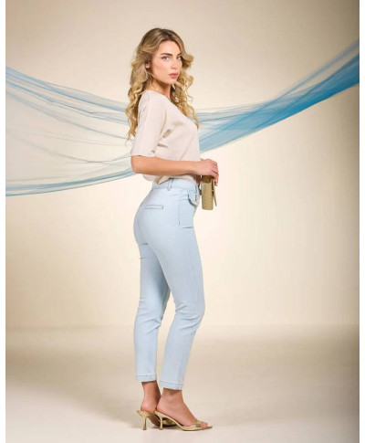 Pantalone jeans a gamba stretta con pattine sfrangiate- 70% Cotone, 28% Poliestere, 2% Elastan. Ideale per look quotidiani.