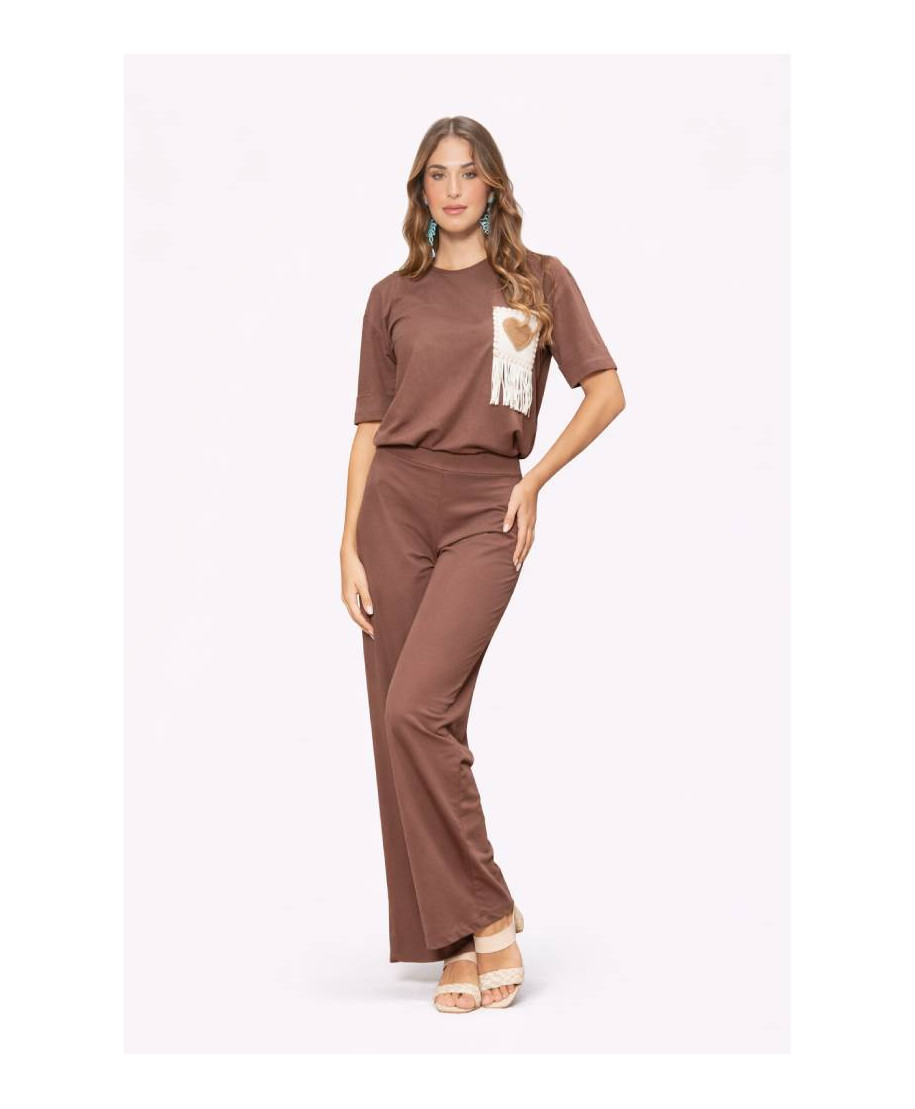 Pantalone a gamba larga con elastico in vita. Ideale per un look femminile moderno e confortevole. Composizione: 53% Viscosa, 47% Poliammide