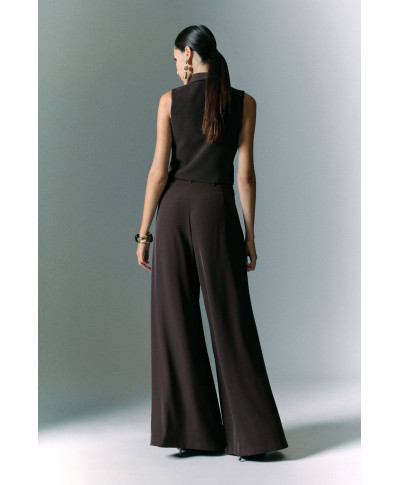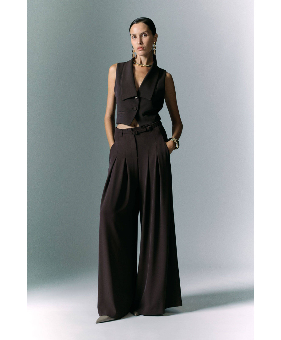Pantalone palazzo a vita alta con pinces. Composizione: 96% poliestere, 4% elastan