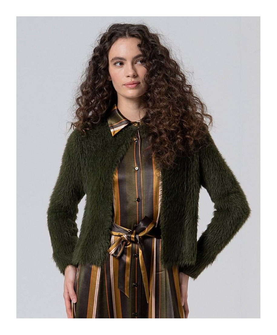 Giacca in maglia effetto pelliccia. Composizione: 50% cotone, 50% nylon