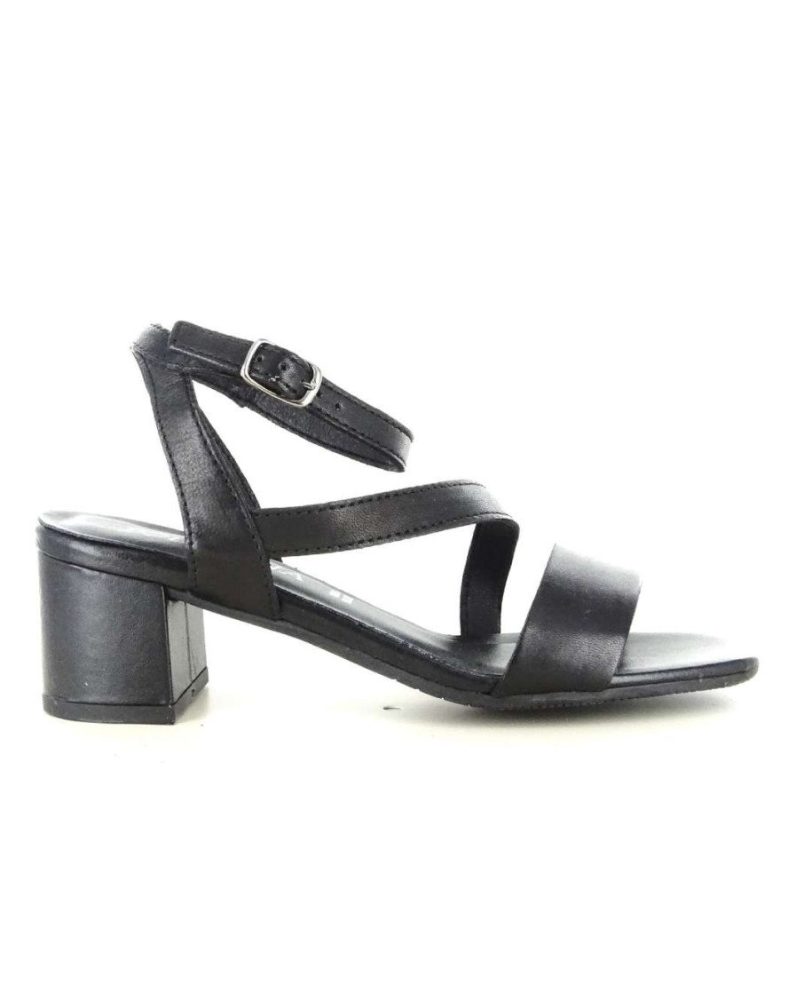 Sandalo in vera pelle. Tacco 4 cm. Largo e comodo. Cinturino alla caviglia.