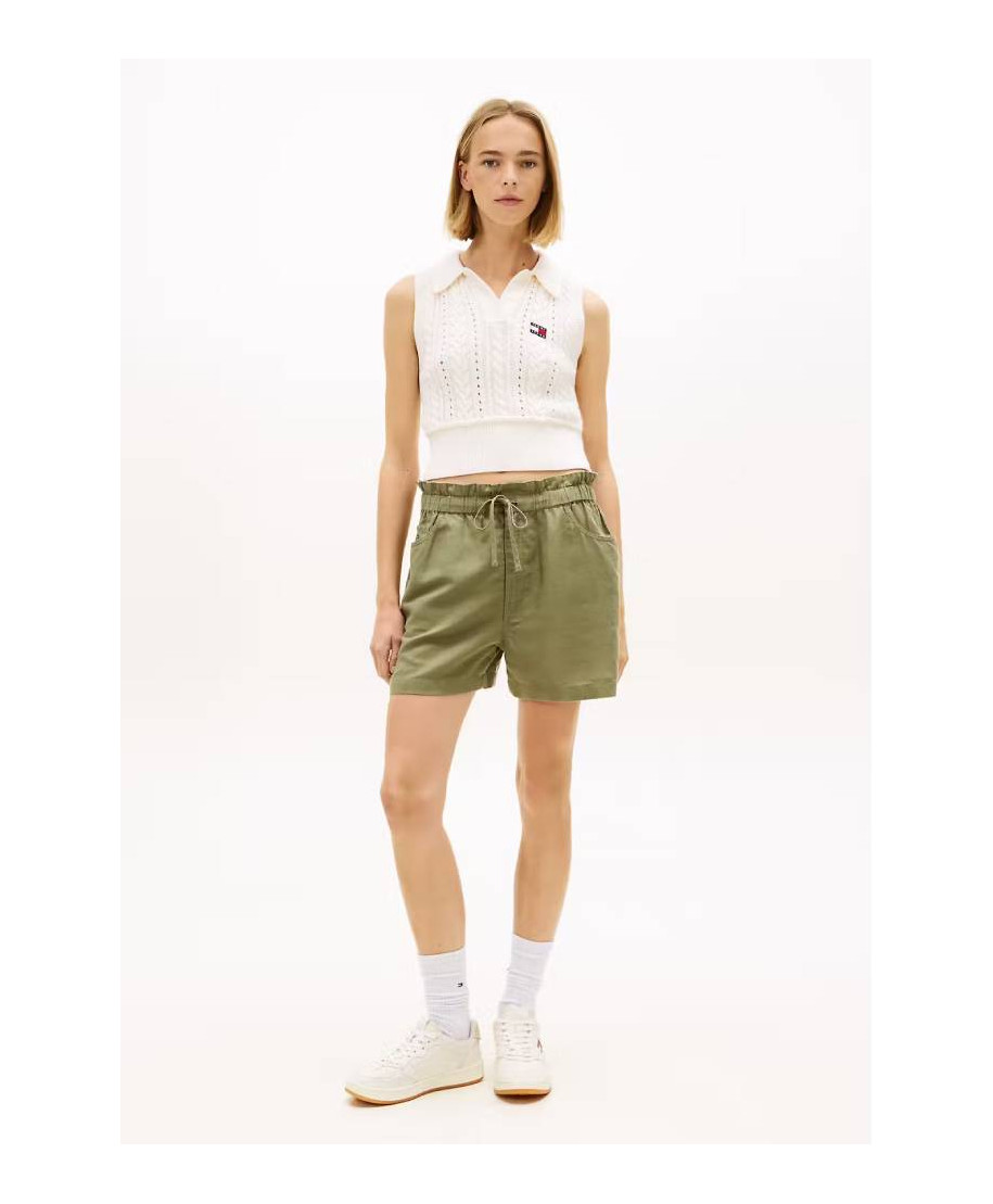 Shorts lino essenziali donna Tommy Jeans dalla linea moderna, ideale per outfit primavera estate.