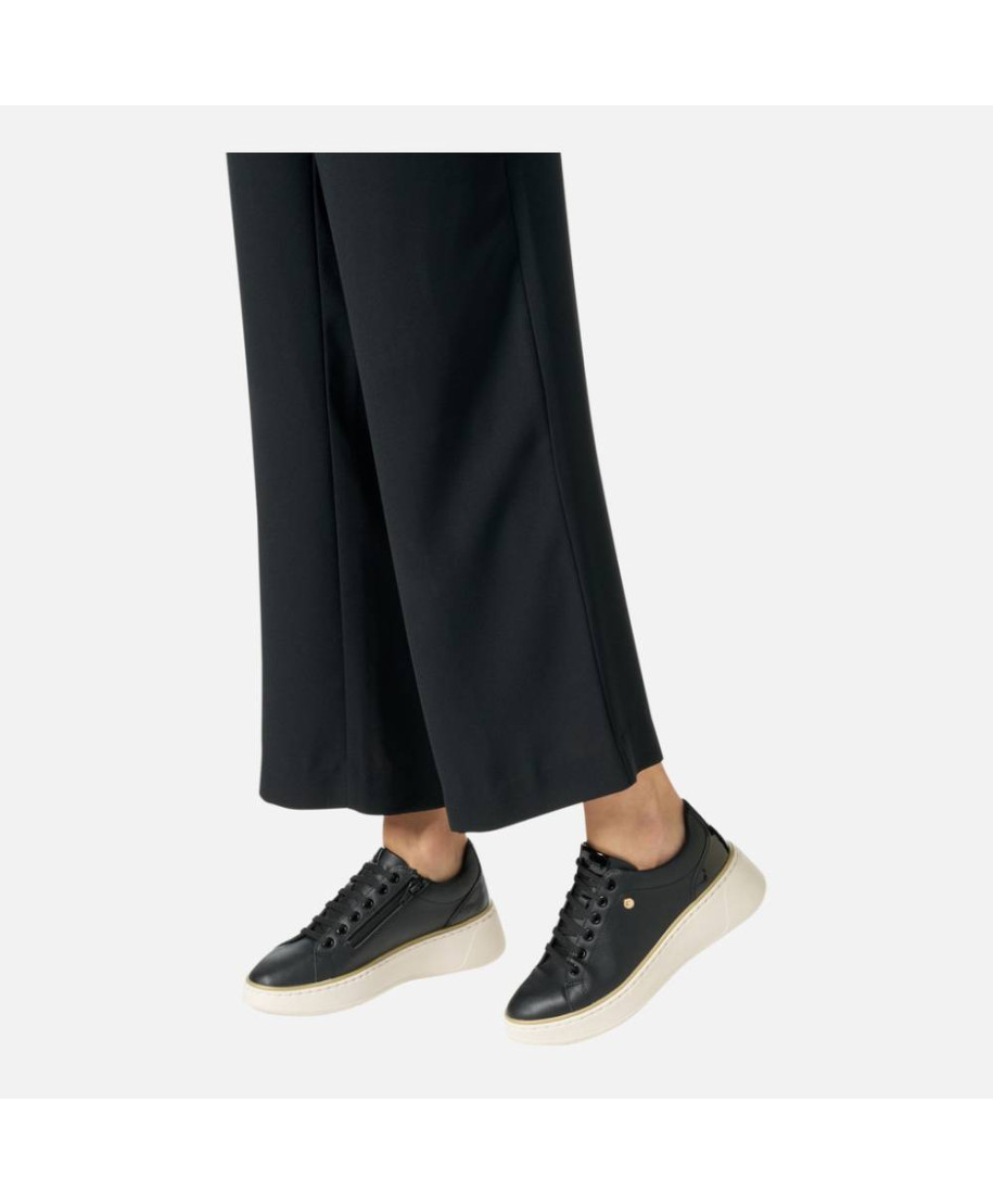 Sneaker realizzata in un mix di materiale effetto pelle e materiale effetto nabuk perlato. Indosso facile e veloce. Allacciatura con lacci e zip.