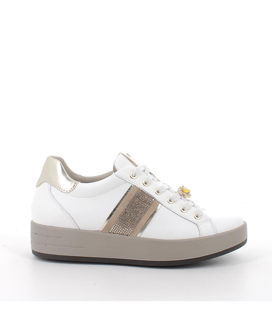 Sneakers da donna con lacci. Composizione: pelle, tessuto