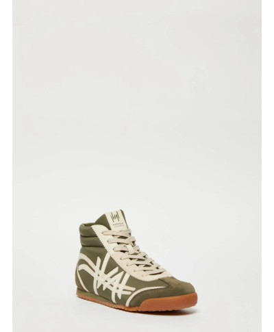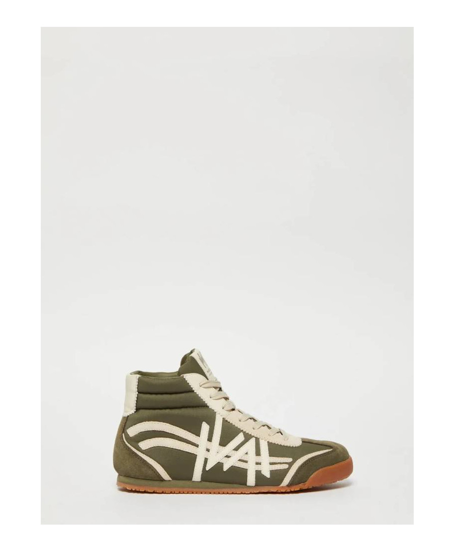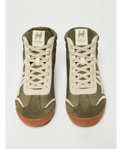 Sneaker alla caviglia con imbottitura sullo scollo e tomaia ritmata da intarsi a contrasto colore.