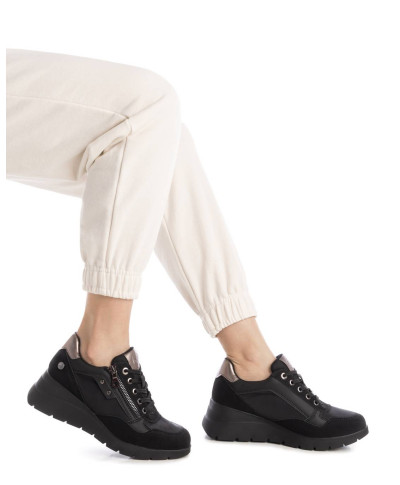 Sneaker da donna del marchio Xti. Realizzato in materiale che imita la pelle. Con chiusura a cerniera per un uso facile e confortevole. Suola con zeppa in gomma antiscivolo. Modello base essenziale per il tuo guardaroba. Con soletta estraibile. Questo modello stato certificato vegano dall'organizzazione globale PETA (Animal Rights Organization).