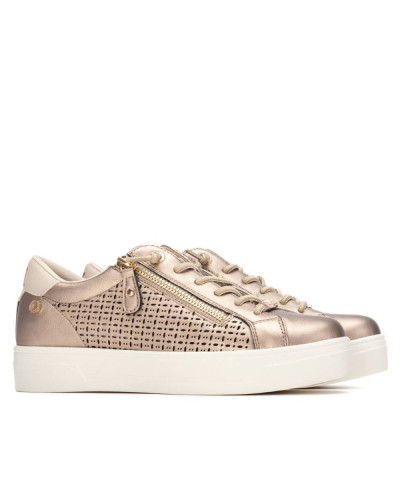 Scarpa da donna di Xti. Realizzata in materiale similpelle con un grazioso design traforato che aggiunge un tocco decorativo e femminile. Presenta una cerniera laterale per indossarla e toglierla facilmente e un dettaglio moderno. La suola piatta e robusta, in stile casco, garantisce un comfort ottimale per l'uso quotidiano. Presenta inoltre una suola antiscivolo per una maggiore sicurezza a ogni passo. Questo modello ha ricevuto la certificazione vegana da PETA (l'organizzazione mondiale per i diritti degli animali).