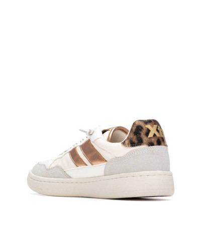 Sneaker da donna di Xti. Realizzate in materiale effetto pelle, con un elegante dettaglio metallico laterale per un tocco moderno. Il tallone con stampa animalier aggiunge uno stile audace e contemporaneo. Design piatto con lacci per una calzata comoda e personalizzata. Ideali per combinare comfort e stile ogni giorno. Questo modello ha ricevuto la certificazione vegana da PETA (Animal Rights Organization).