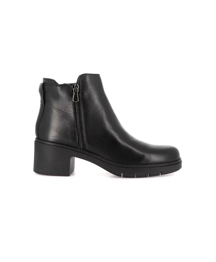 Tronchetto in pelle con tacco ampio. La pelle dalla finitura lucida esalta la raffinatezza del tronchetto ROLA; il tacco a base ampia slancia la figura, mantenendo perla massima praticit Il sottopiede Dry-Soft assorbe ed espelle velocemente l'umiditmantenendo una piacevole sensazione di asciutto. La suola Conforma garantisce dinamicite flessibilitalla calzatura, che si adatta cosai movimenti naturali del piede.
