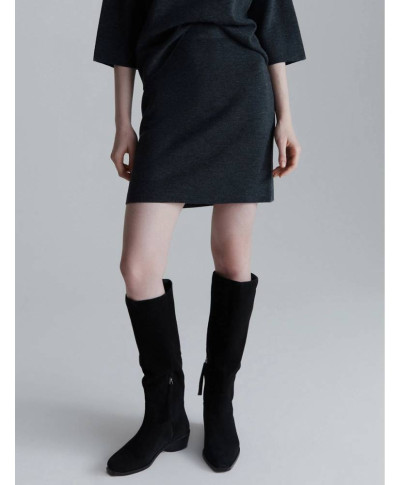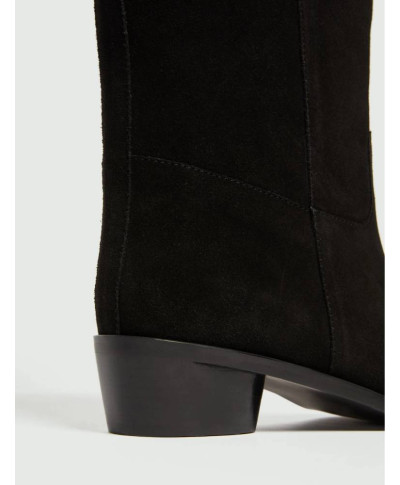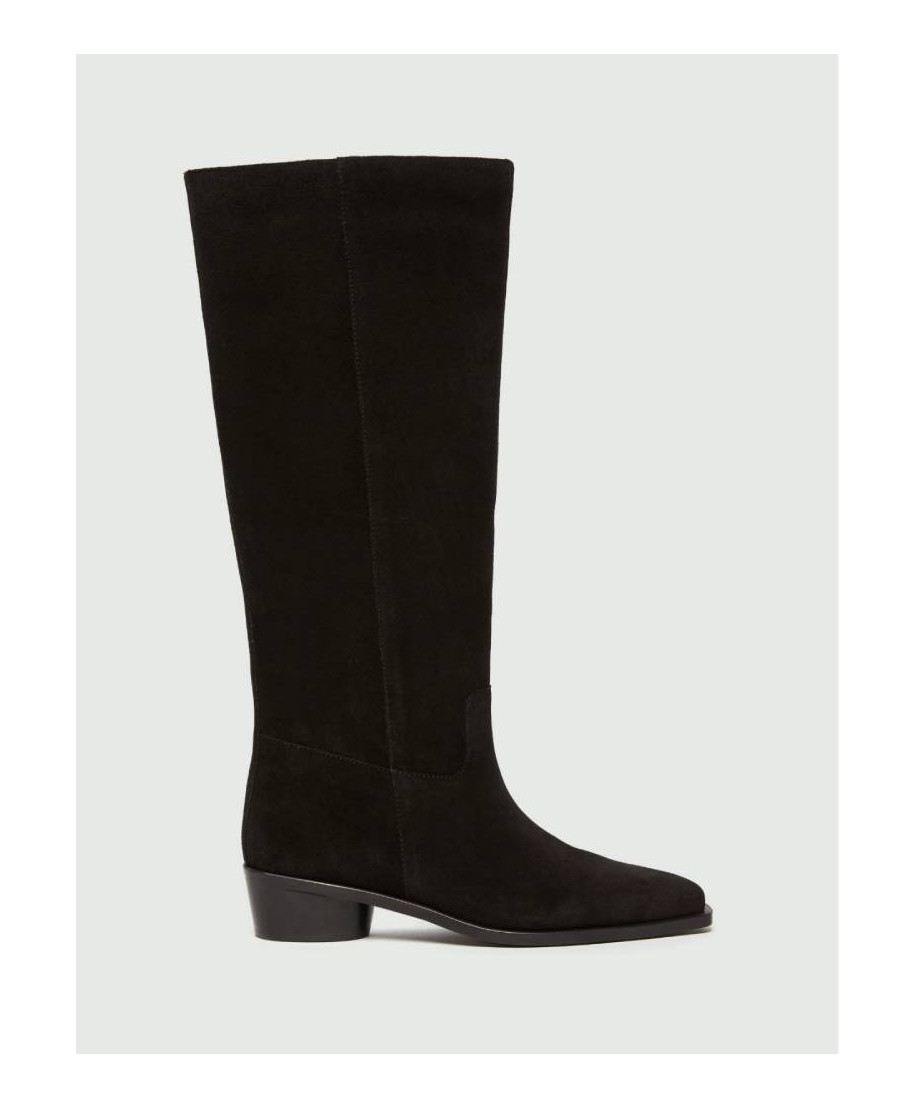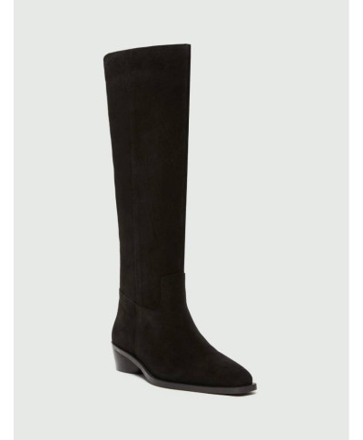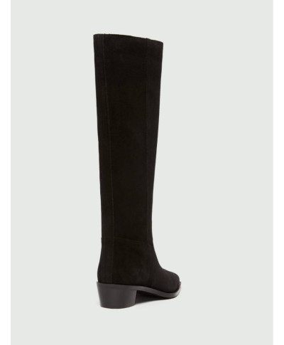 Stivale. Si indossa alzato fin sotto il ginocchio o slouchy questo stivale in morbido suede. Le linee sono pulite, il tacco basso, la punta a mandorla per un perfetto stile easy chic. Altezza tacco 3 cm