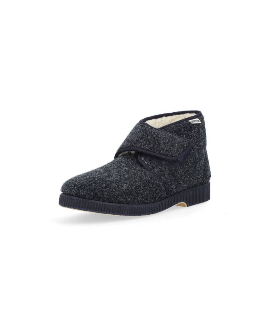 Scarpa comoda a pantofola per tenere al caldo i piedi. Tomaia in tessuto melangiato in poliestere. Sottopiede in lana. Suola: fondo in gomma vulcanizzata, con tacco interno in sughero e riempitivo in feltro ottenuto da fibre vegetali.