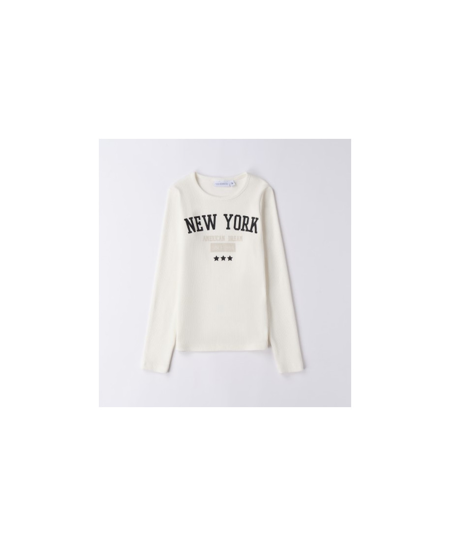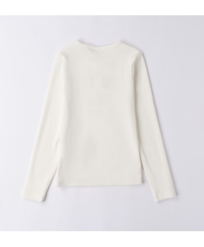 Maglietta a costine, girocollo, a maniche lunghe. Composizione: 95% cotone, 5% elastan.