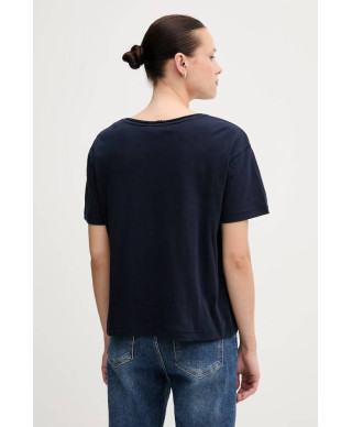 Tshirt in maglia tramata con scollatura a V. Aggiungi un capo classico e versatile al tuo guardaroba con la T-shirt in puro cotone fiammato, rinnovata dall'intramontabile scollatura a V. Caratteristiche principali: puro cotone fiammato, scollatura a V, nastro iconico all'interno del collo, branding Tommy Hilfiger, bandierina Tommy Hilfiger ricamata sul petto. Regular fit. Composizione: 100% cotone.