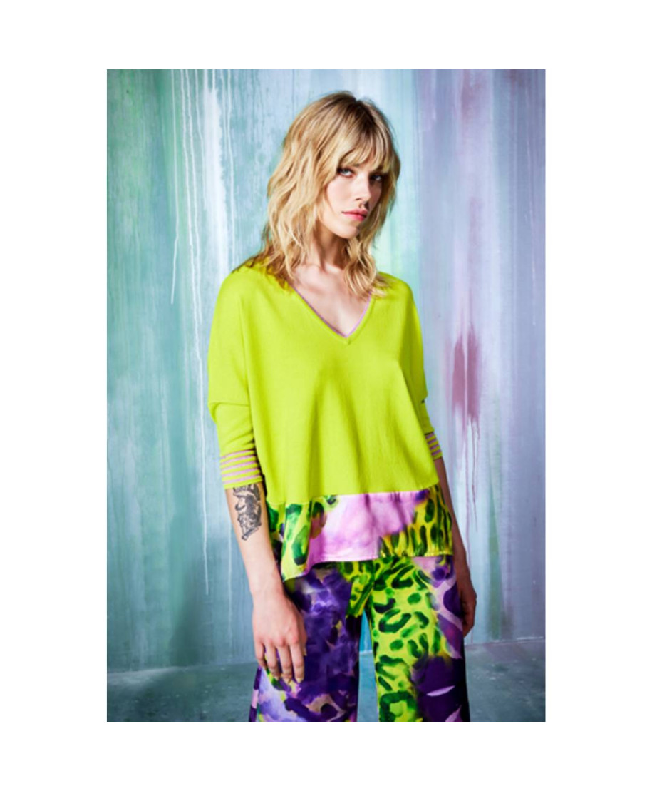Maglia over. Composizione: 65% viscosa, 35% poliammide. Veste ampio: la taglia S corrisponde ad una M/L.