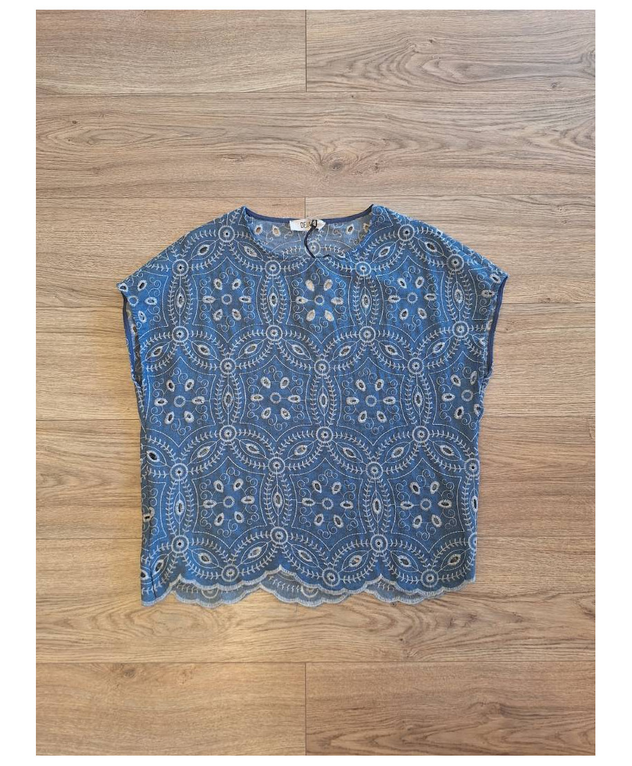 Casacca in tessuto sangallo. Composizione T1: 100% cotone. Composizione T2: 95% viscosa, 5% elastan.