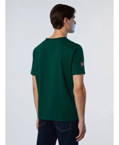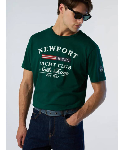 Tshirt ispirata allarchivio storico North Sails. Il modello realizzato in jersey di cotone compatto ed rifinito con la stampa sul davanti che omaggia la cittdi Newport. L'occhiello in metallo applicato al fondo un dettaglio tipico delle vele.