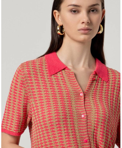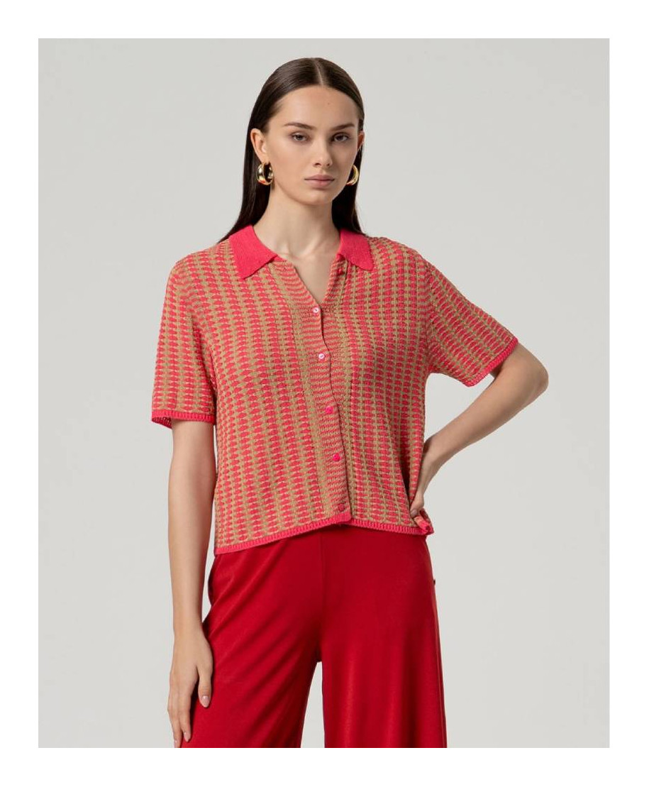 Maglia donna con collo a polo e maniche corte. Adatto a look quotidiani ordinati e confortevoli.