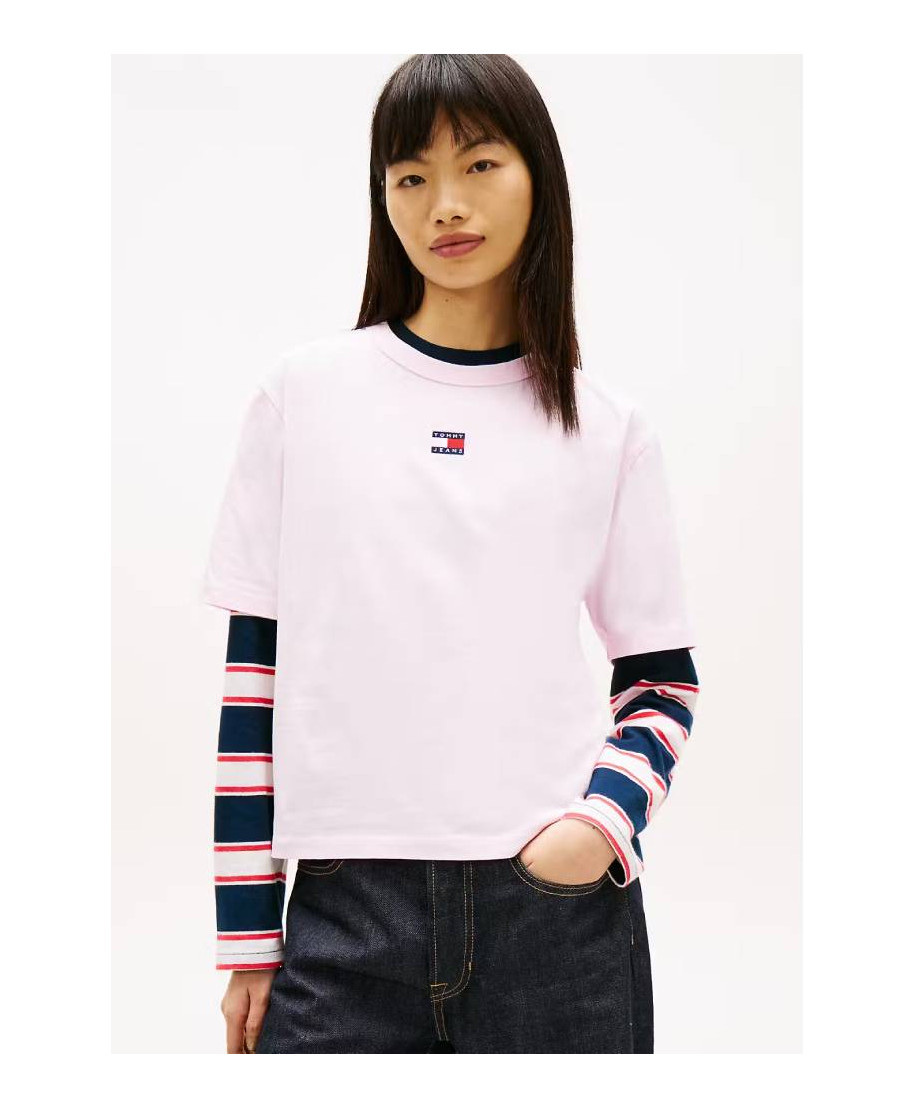 T shirt boxy logo donna Tommy Jeans dalla linea moderna, ideale per outfit primavera estate.