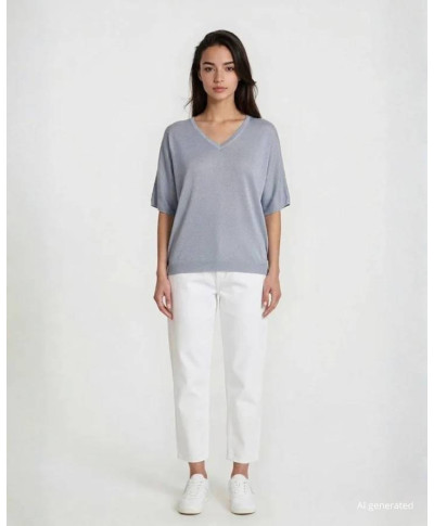 Maglia con scollo a V, manica lunga e scollatura a goccia sul dietro- 55% Viscoa, 29% Poliammide, 16% Fibra metallica, 16% Lurex. Ideale per look quotidiani.