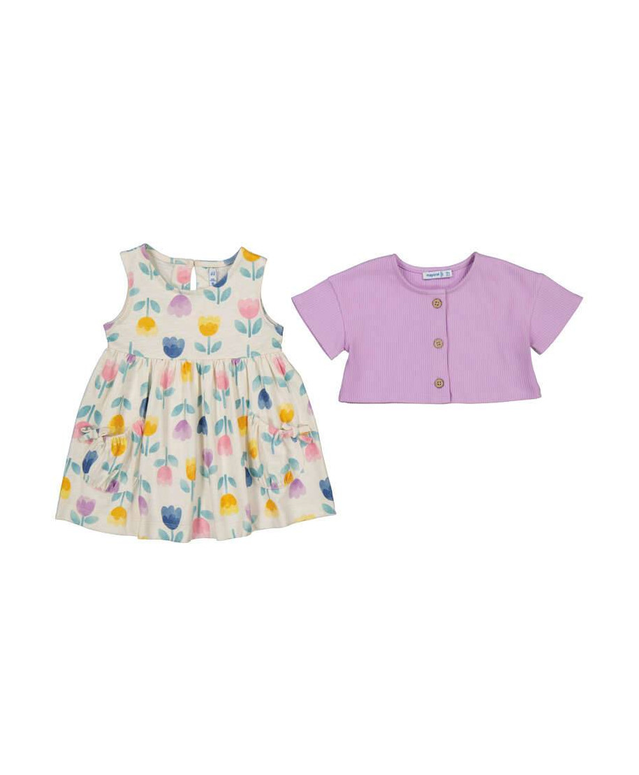 Vestito e maglioncino da bambina. Composizione: 100% cotone.