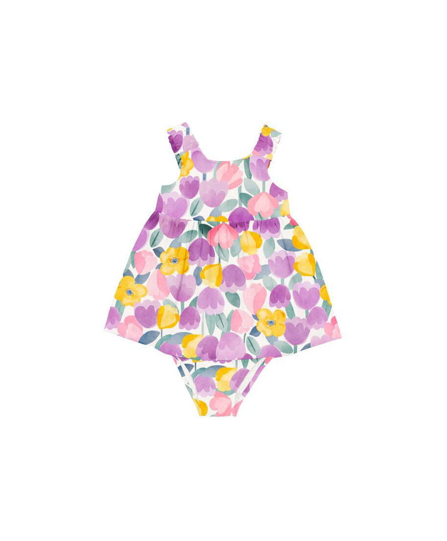 Vestito e coulotte con stampa a fiori da bambina. Composizione: 92% cotone, 8% elastan.