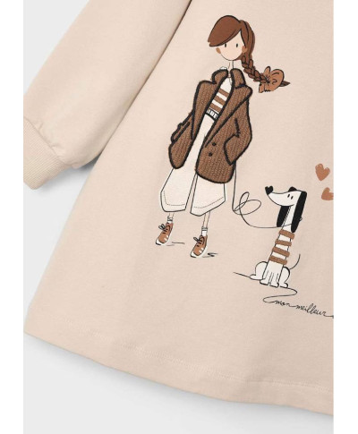 Vestito manica lunga per bambina con polsini elasticizzati. Girocollo. Morbido tessuto di cotone elasticizzato. Elementi decorativi: Serigrafia (print). Scegliendo i nostri prodotti in cotone, supporti il nostro impegno nell'iniziativa Better Cotton. Il cotone Better Cotton ottenuto attraverso un sistema di bilancio di massa e non puessere fisicamente ricondotto ai prodotti finali. tuttavia, i produttori di cotone beneficiano della domanda di Better Cotton in volumi equivalenti.