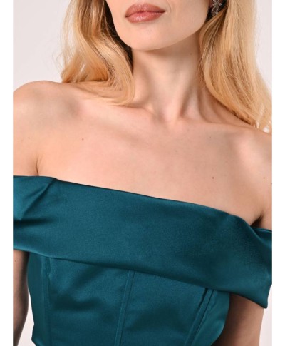 Abito a sirena, tinta unita, prodotto in Italia. Composizione: 97% Poliestere, 3% Elastan