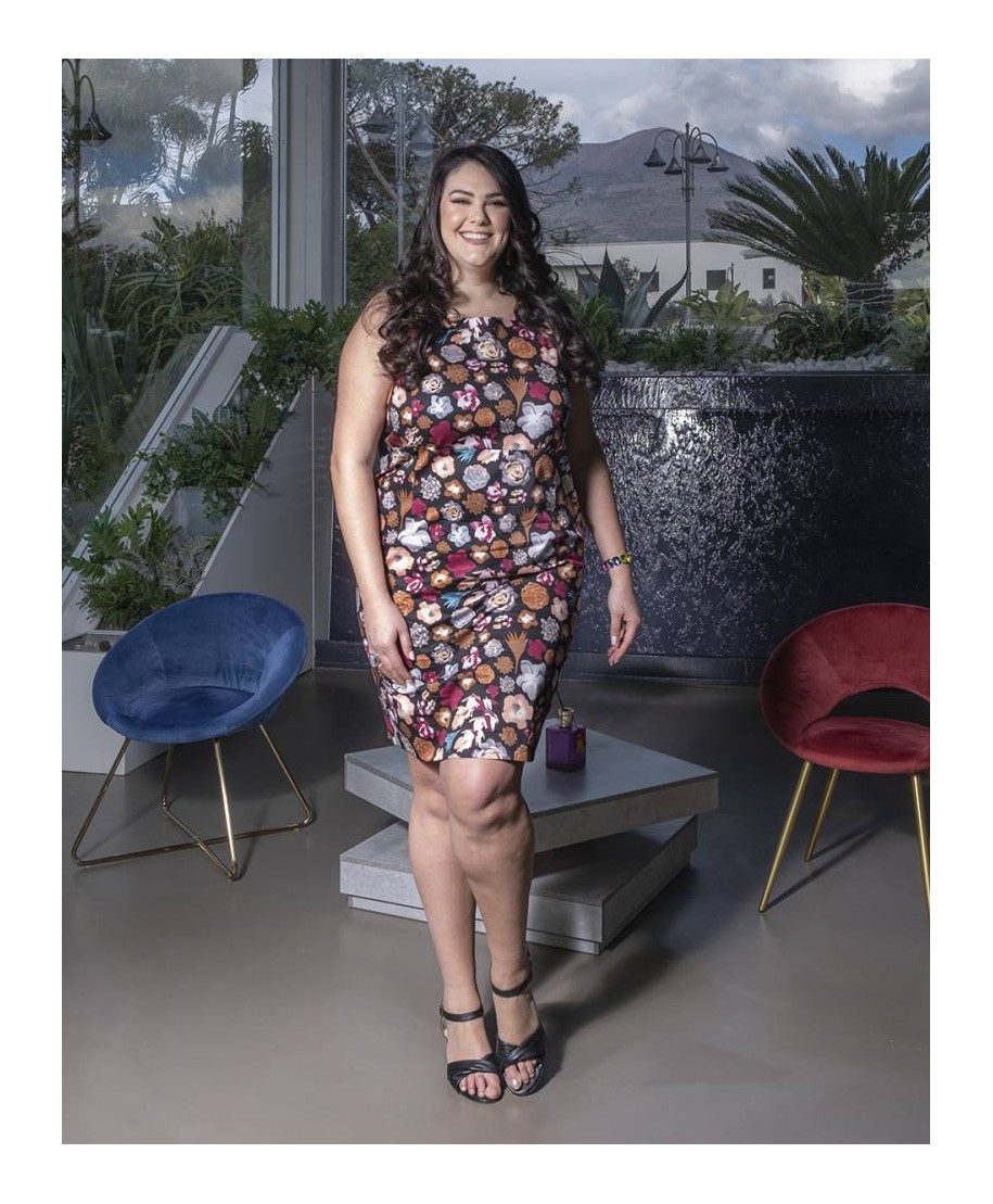 Tubino senza maniche. Fantasia floreale. Zip nascosta sul retro. Composizione: 95% cotone, 5% elastan.